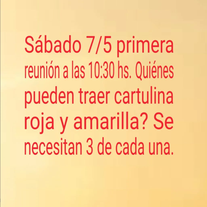 Pasados dos años del paron obligatorio por la pandemia, llegaria la tan esperada publicaion que diria sabado 7/5 primera reunion, Traigan, si tienen, tijeras de forma, regla y marcadores para hacer los carteles. .